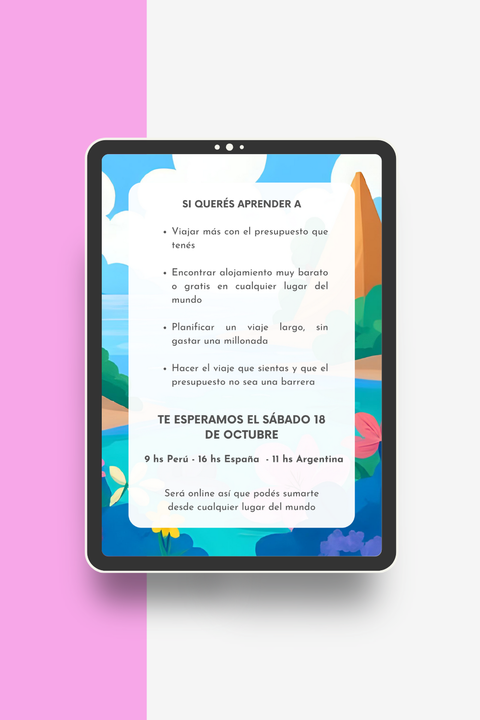 Una clase en vivo para que puedas recorrer el mundo 🌍 Conocé estrategias simples para viajar barato, organizar tu presupuesto y animarte a dar el primer paso hacia la vida viajera que soñás. Porque los viajes no son sólo para unos pocos, son para todos los que se animen